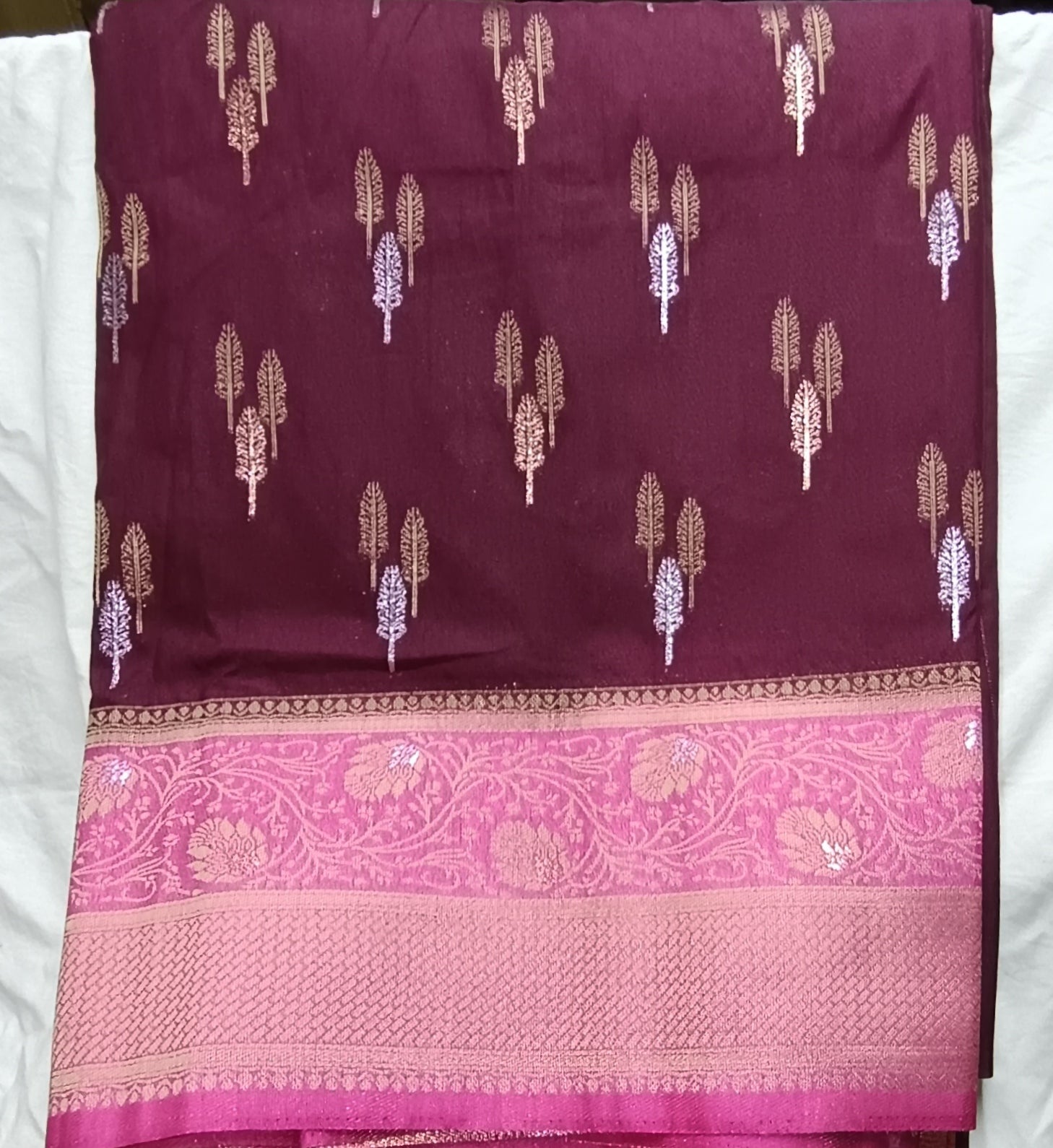 Dark Red Maron Dola Gold & Silver Zari sarees